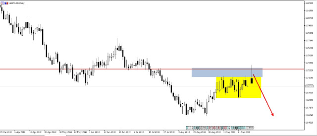 GBPCAD, eis o que espero para pensar em venda, um falso rompimento desse range que já dura mais de 2 semanas.